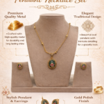 Add a touch of elegance to your look with this beautifully crafted gold polish necklace set. Featuring a delicate chain with a stylish square pendant and matching stud earrings.